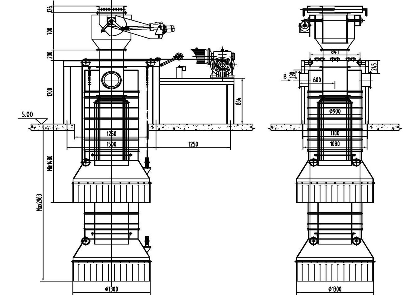 顆粒散裝機是從庫內(nèi)將熟料、骨料(≤50mm) 等顆粒狀物料自動輸送到散裝車船的設備。主要由手動棒閥,電動扇形閥,卷揚裝置,伸縮卸料裝置、收塵軟管,電容式限位開關(guān),電控系統(tǒng)等部分組成。用戶也可選用庫側(cè)熟料散裝設備